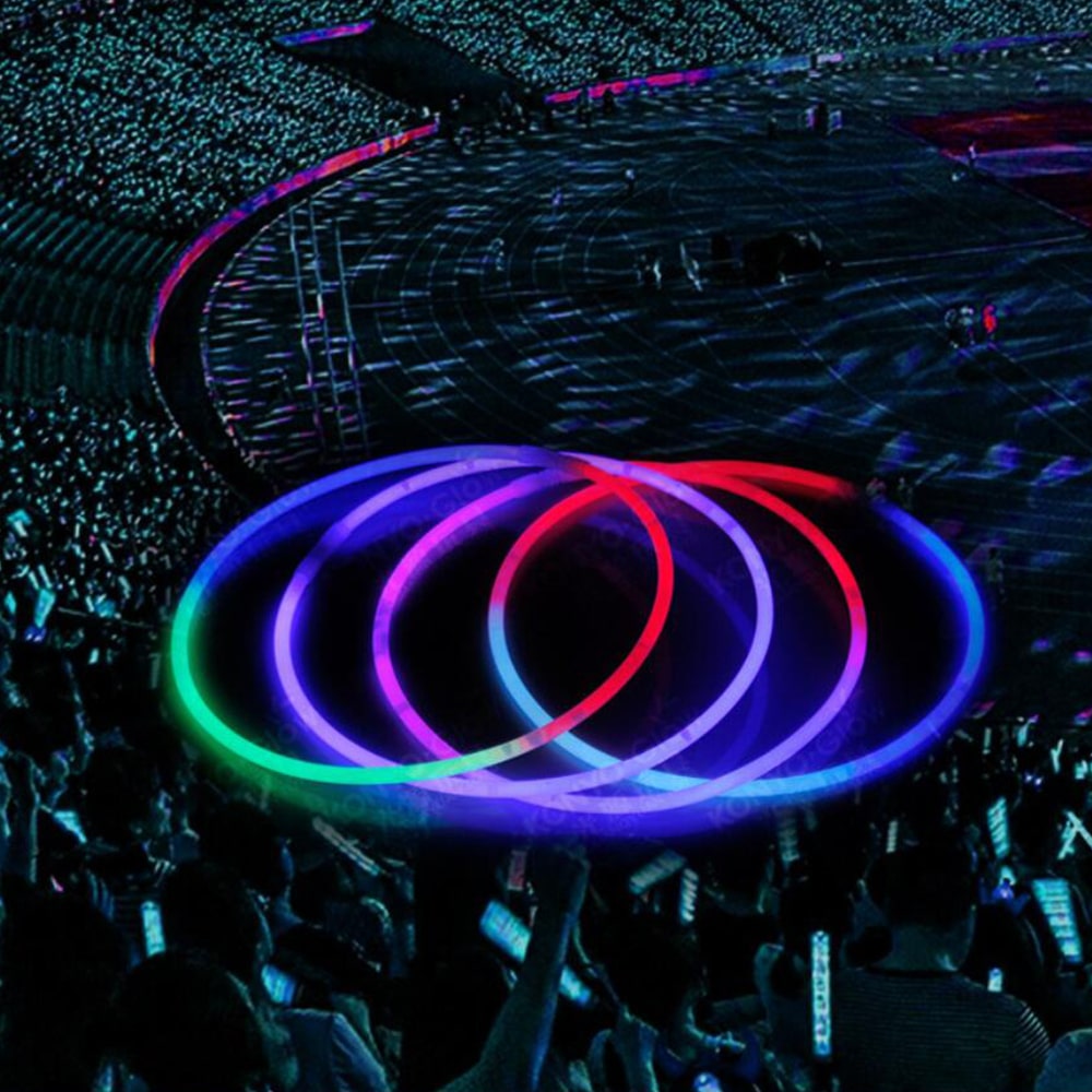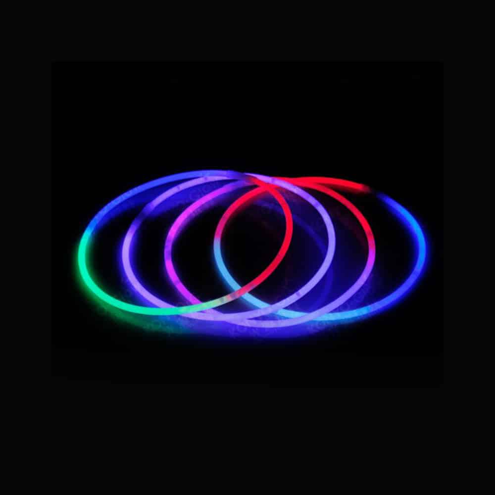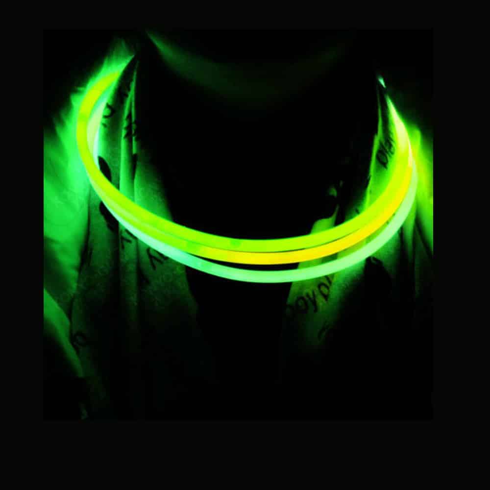 - Til hver halskæde medfølger der tre plastbeslag og tre glowsticks, der nemt kan bøjes for at aktivere lyset.