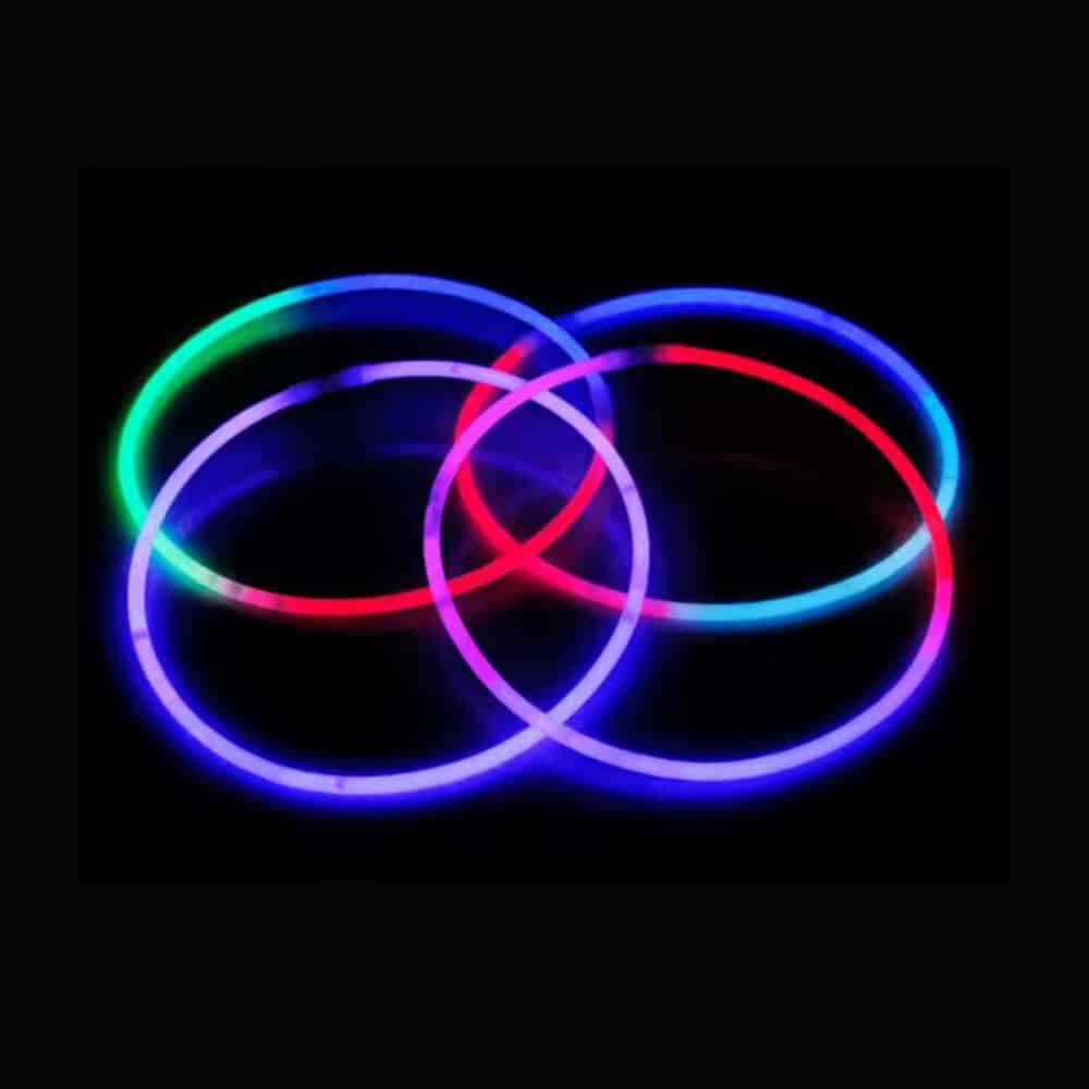 Gør dig klar til at lyse op ved enhver begivenhed med denne selvlysende halskæde i tre farver! Perfekt til fester, natløb og enhver anden aktivitet, hvor du vil skille dig ud. Halskæden består af tre forskellige glowsticks, som enten kan anvendes som armbånd eller sammenføjes med plastbeslag til en halskæde.