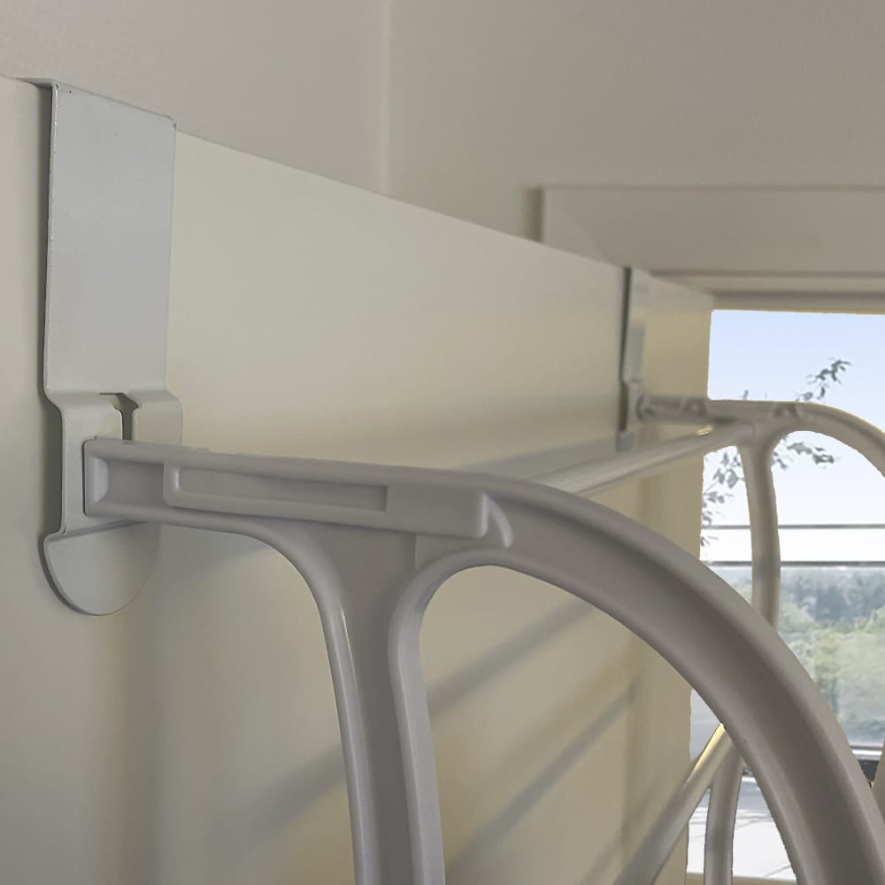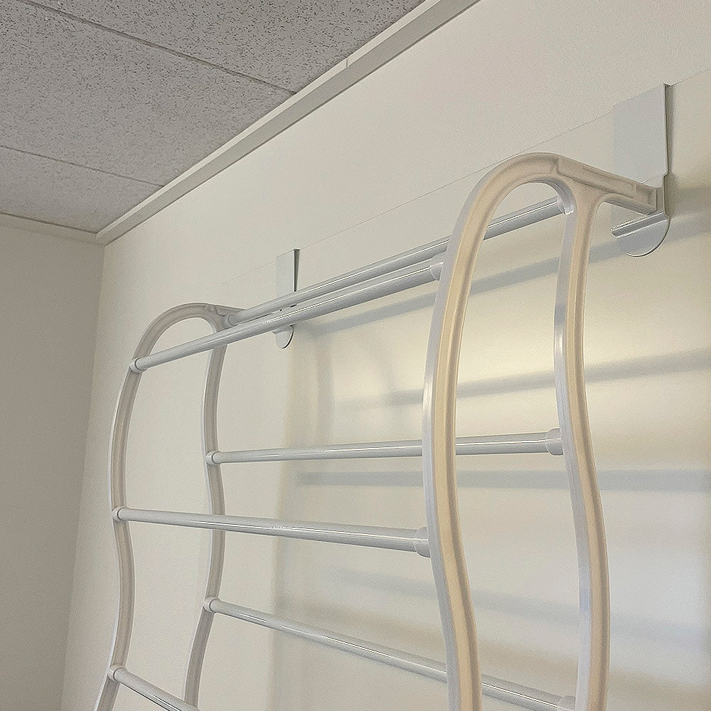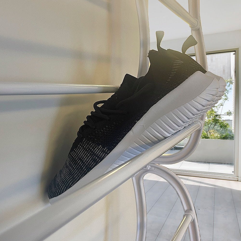 Skostativet er lavet af metal og hvidt, robust kvalitetsplastik, så det kan holde til mange års brug.