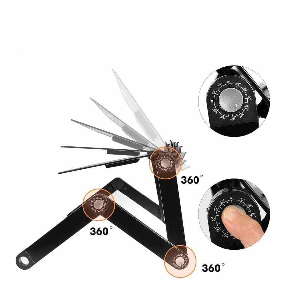 Smart design med justerbar 360 grader funktion - hvert foldeben har 3 drejeknapper, der kan justeres og låses i enhver højde og vinkel, du har brug for.