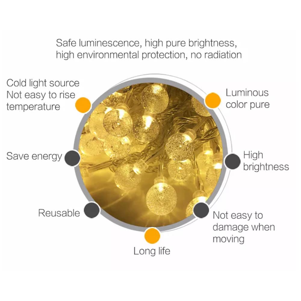 Solcelle lyskæde m/kuglelys - 5M-20 LED / 7M-50 LED / 12M-100 LED
