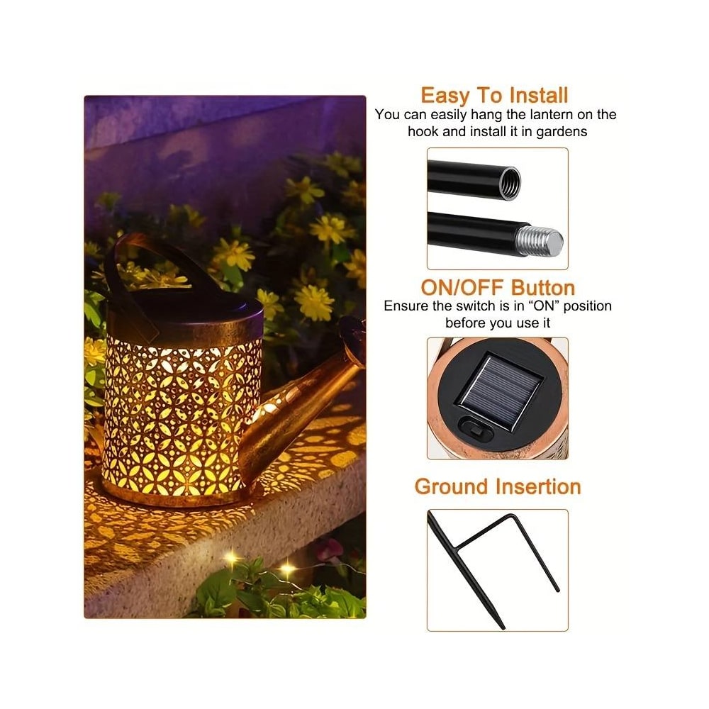 Virkelig sød og stemningsskabende vandkande LED-lampe til udendørs brug, perfekt til havedekoration til græsplænen, i dit havebed ved terrassen eller andre steder rundt om huset, hvor der er lidt plads. Vandkanden kan hænges med den medfølgende hyrdekrog eller placeres fladt hvor som helst.