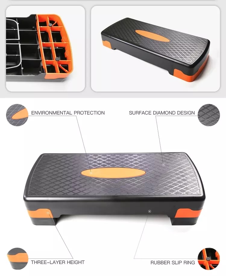 - NON-SLIP - Fitness Aerobic Stepbænken er designet med en skridsikker forstærket platform. Den har en robust konstruktion, men er stadig let og nem at bære rundt på.