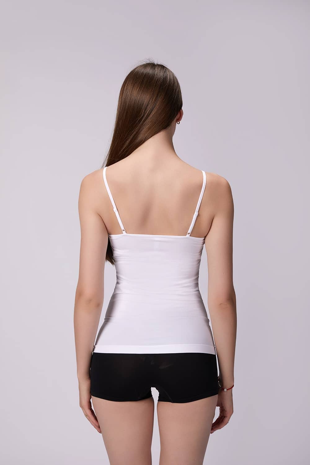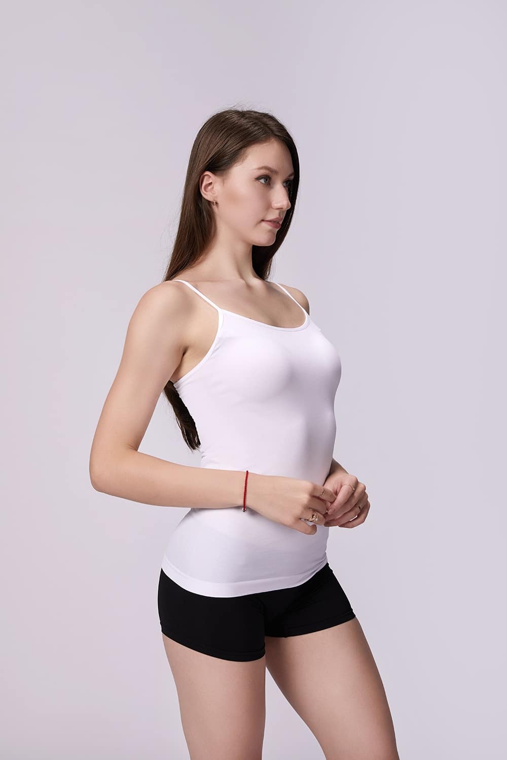Ærmeløs top med smalle skulderstropper. Den føles blød og lækker at have på og produceret i strækstof, der tilpasser sig forskellige kropstyper, giver ekstra komfort og bevægelsesfrihed og ingen irriterende sømme i siderne.