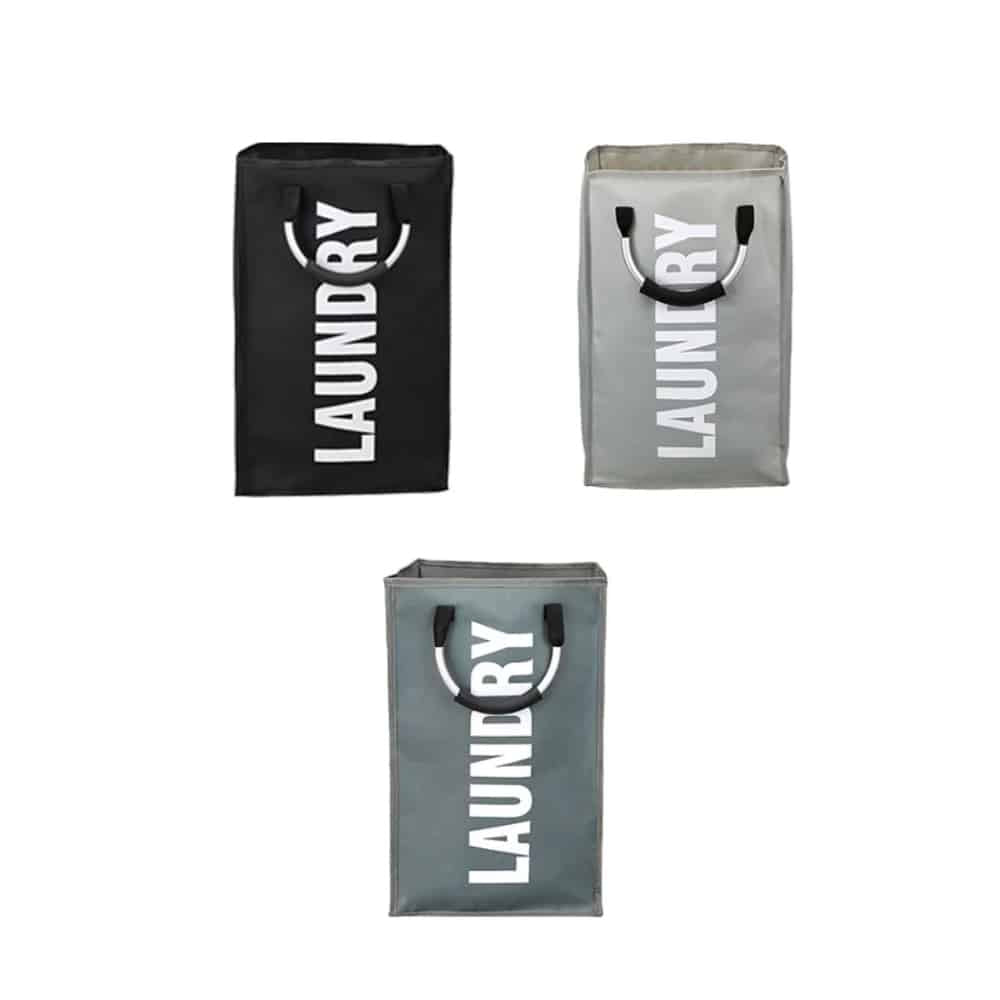 Vasketøjskurv - foldbar med håndtag - sort, grå eller lysegrå -