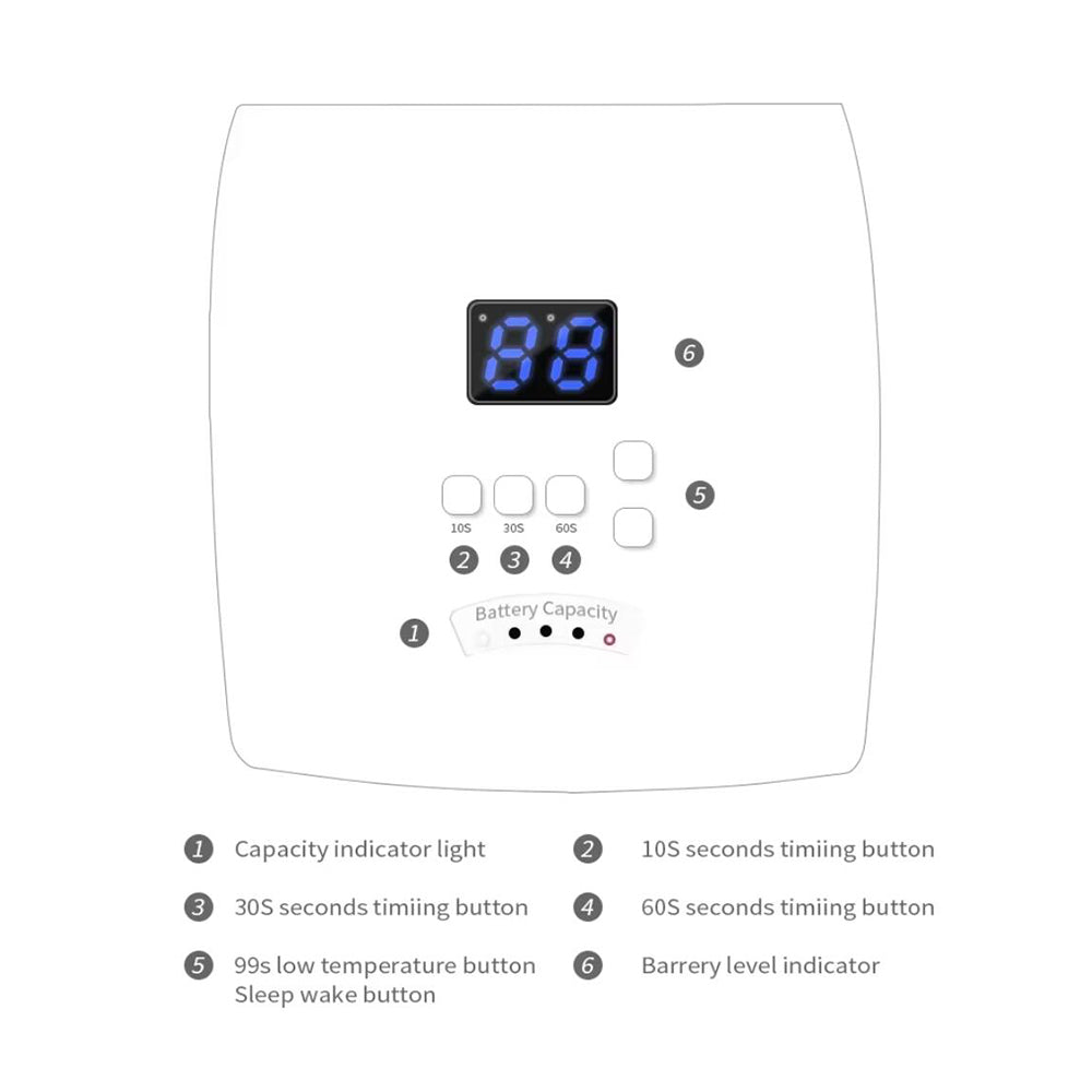 Med en levetid på op til 50.000 timer og den højeste kvalitet af LED-lys, giver denne LED neglelampe professionel hærdning, der er hurtigt og effektivt. Det store arbejdsområde og de 30 LED-lys sikrer, at dine negle bliver ordentligt hærdet hver gang.