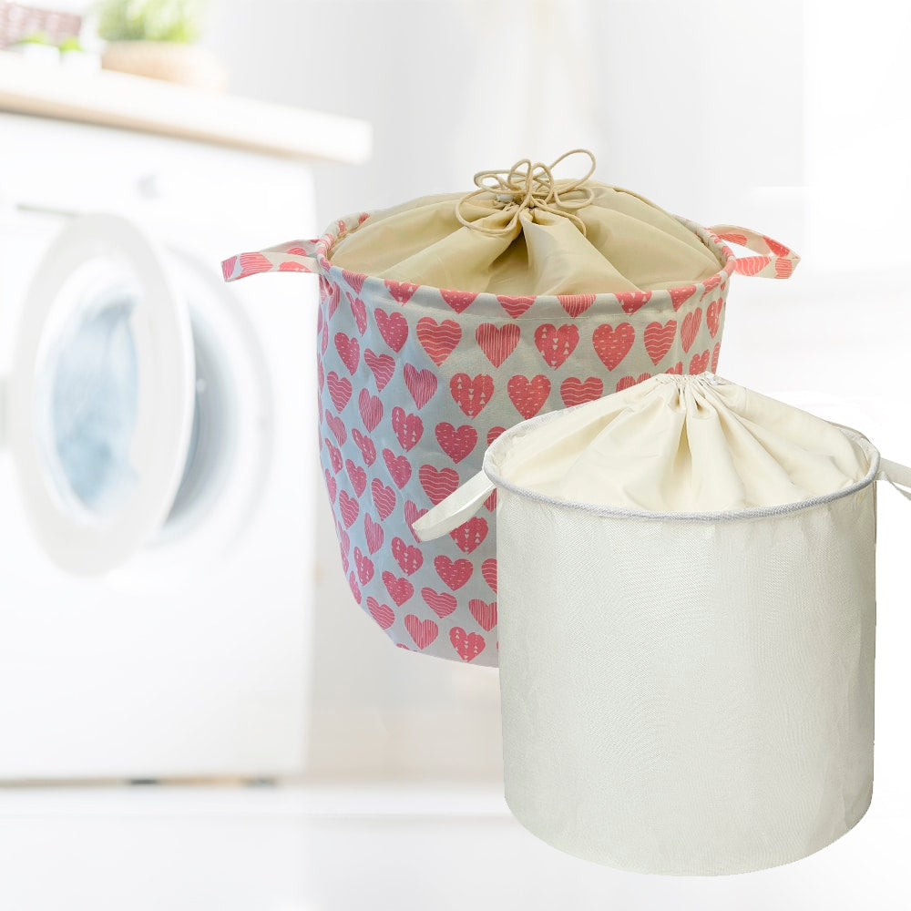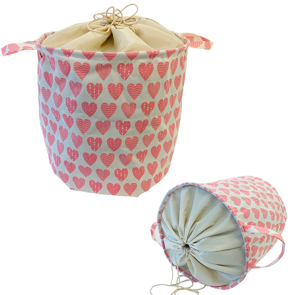 Kompakt og foldbar vasketøjskurv enten i råhvid design eller med en masse små søde hjerter, en fin vasketøjskurv der der helt sikkert vil pynte på børneværelset eller i soveværelset, fremstillet i flot tekstil.