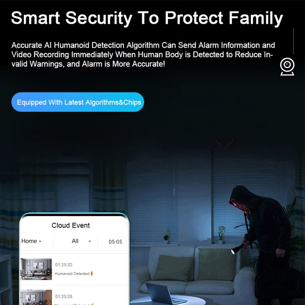 Dette intelligente kamera, der let monteres på en E27-sokkel til indendørs brug, repræsenterer en kraftfuld og avanceret løsning indenfor overvågningsudstyr.